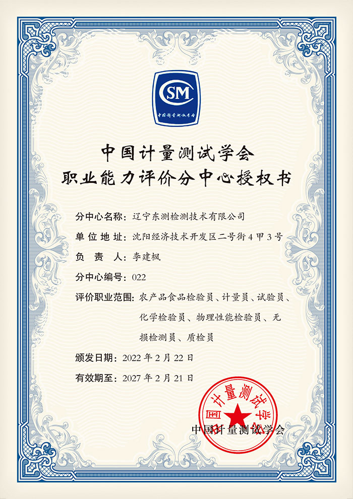 中國計(jì)量測試學(xué)會(huì)職業(yè)能力評價(jià)分中心授權(quán)書