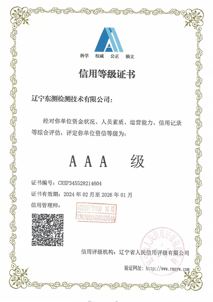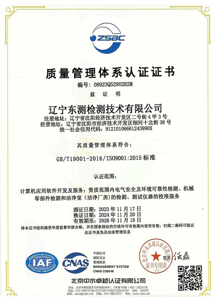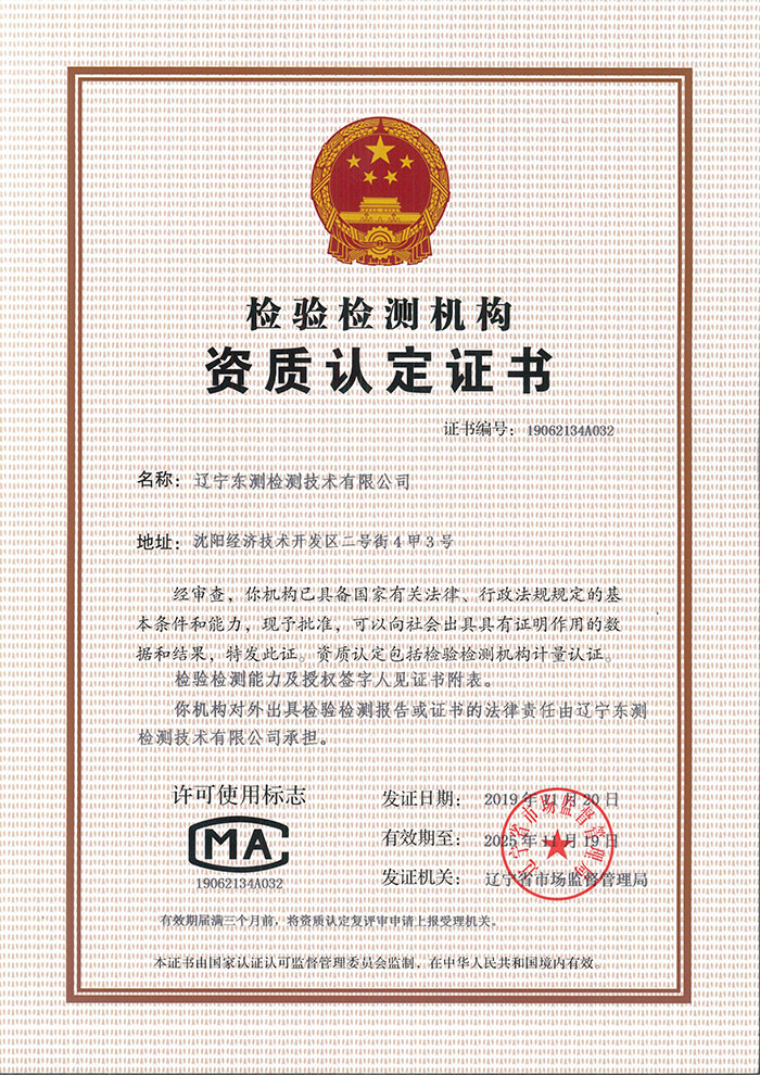 遼寧東測檢測技術(shù)有限公司成立于2007年6月21日,專注于為客戶提供計(jì)量、檢測以及技術(shù)咨詢與培訓(xùn)的第三方計(jì)量檢測機(jī)構(gòu)。遼寧東測檢測技術(shù)有限公司通過了中國合格評定國家認(rèn)可委員會(huì)認(rèn)可(CNAS),獲得檢驗(yàn)檢測機(jī)構(gòu)資質(zhì)認(rèn)定(CMA),憑借著高效的服務(wù)網(wǎng)絡(luò)、雄厚的技術(shù)實(shí)力以及全面的業(yè)務(wù)范圍,本著“科學(xué)、公正、準(zhǔn)確、真誠”的質(zhì)量方針,為社會(huì)提供優(yōu)質(zhì)計(jì)量檢測服務(wù),打造國內(nèi)具有價(jià)值的計(jì)量技術(shù)機(jī)構(gòu)。